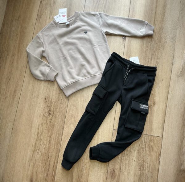 dínós pulóver és oldalzsebes vagány aktív kötős melegítőnadrág